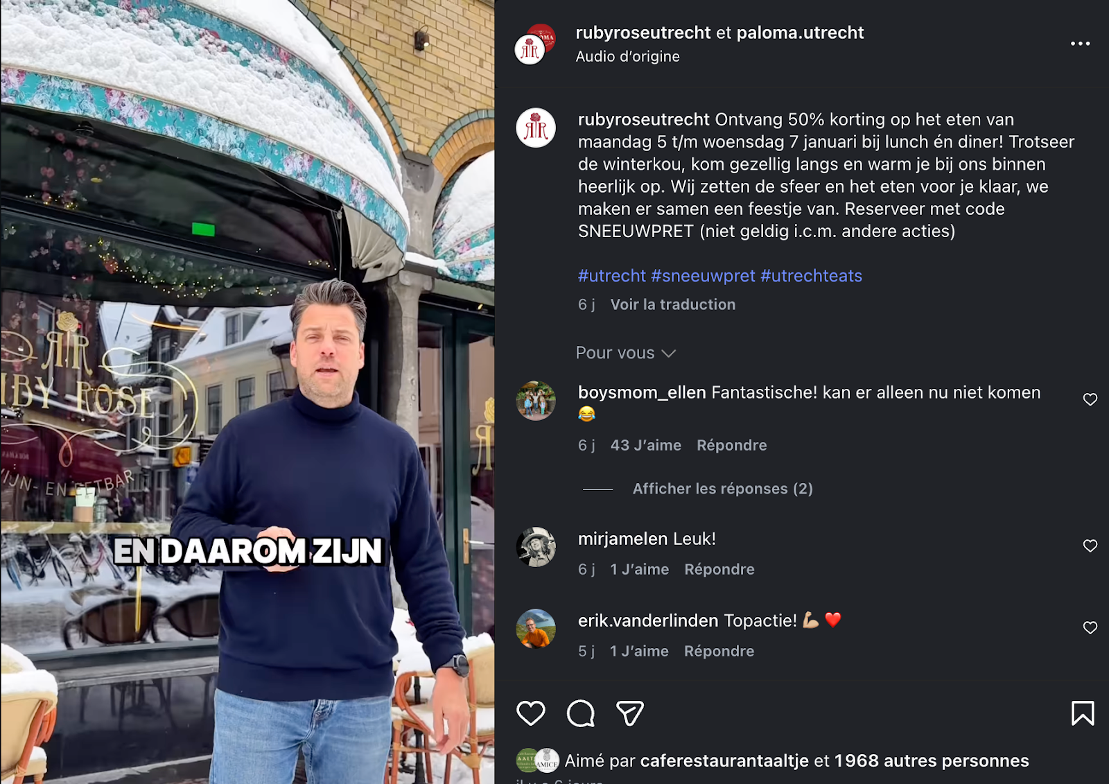 Het resultaat was indrukwekkend. Binnen een paar uur veranderde alles. Elk restaurant van de groep, dat eerst maar 30 gaste had, zat plotseling vol met 260 tot 300 gasten per locatie. In totaal werden die avond zo’n 2.000 gasten ontvangen in de verschillende restaurants in Utrecht.