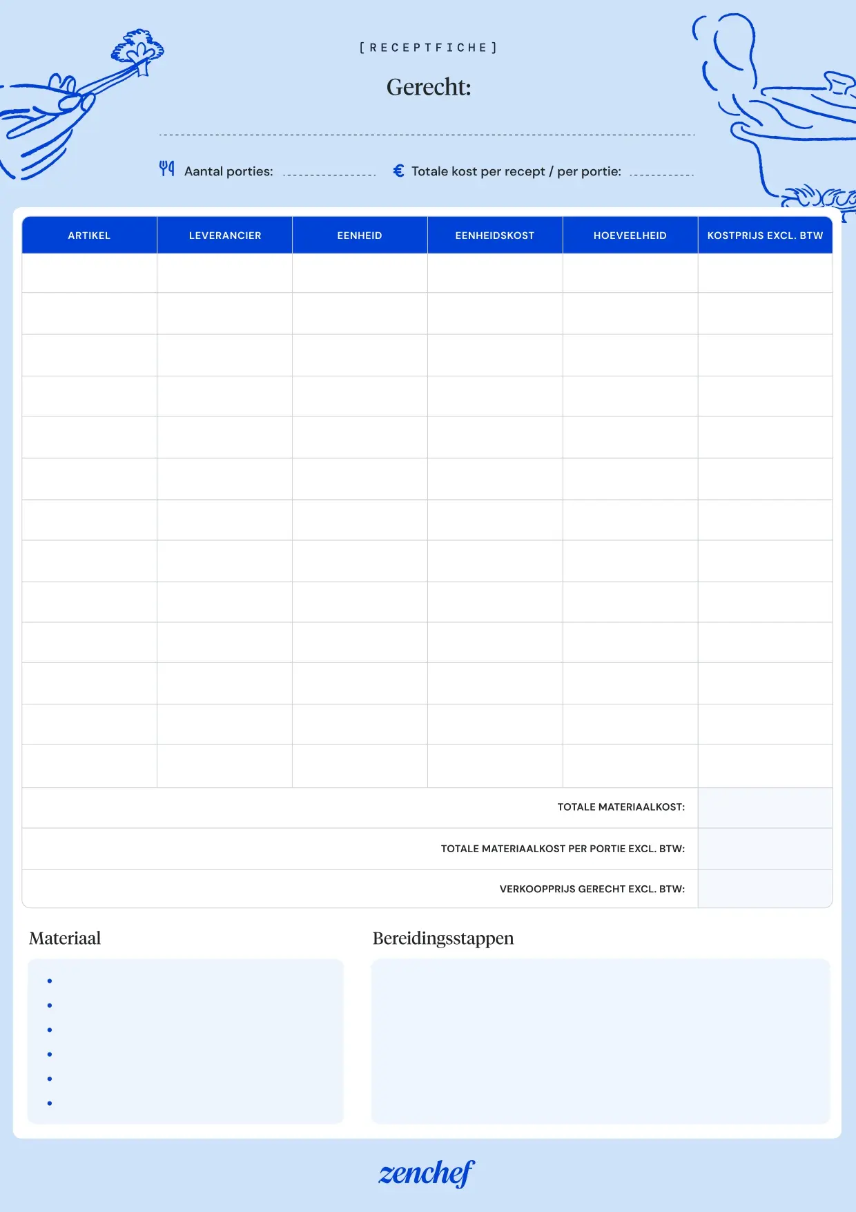 Met de fiche bereken je exact wat nodig is per dag, week of shift. Voorraadbeheer wordt overzichtelijk en je voorkomt tekorten en verspilling.